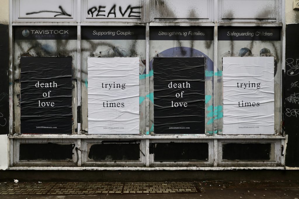 Virgin Music to do the same, but in the physical world. Featuring stark, type-driven posters with the album and single titles, the campaign mirrors the emotional weight of the forthcoming album and Blake’s comments on modernity.