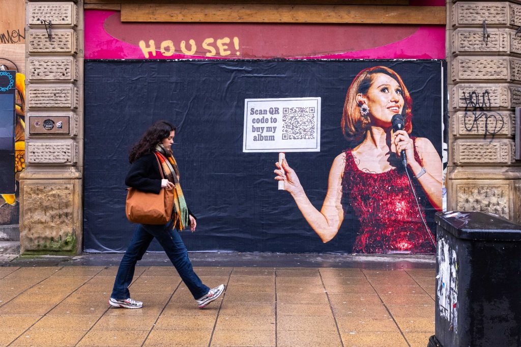 To coincide with her sold-out tour dates there, UNCLE brought the album announcement to the streets of Manchester. Taking over megasites across the city, the work included a characteristically straight-forward request from the artist – to scan the QR code to buy the new album.